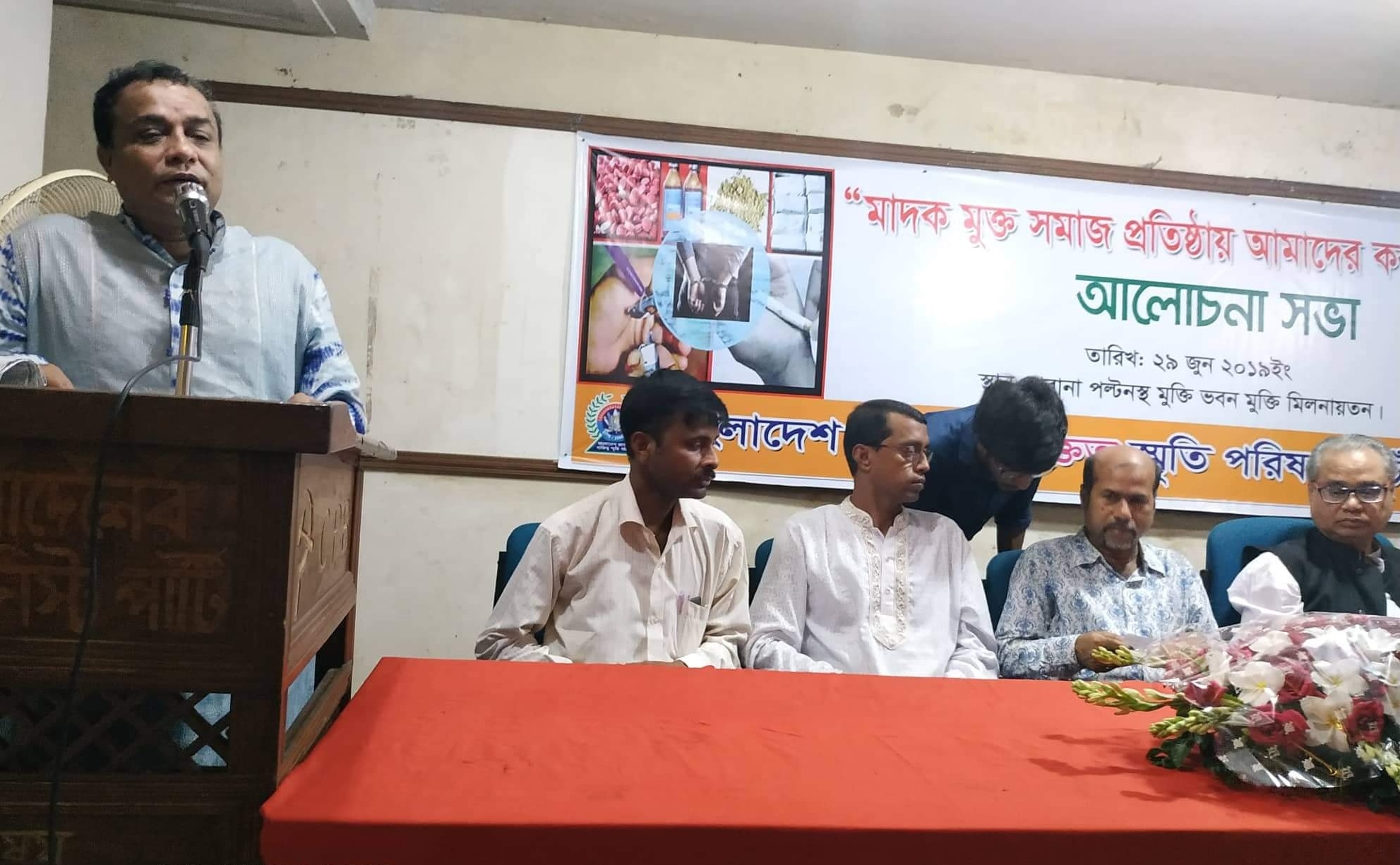২৯শে জুন বিকেল ৫.৩০ মিনিটে পুরানা পল্টনের মুক্তি ভবন মিলনায়তনে অনুষ্ঠিত আলোচনা সভায় উপস্থিত ছিলেন প্রধান অতিথি হিসেবে সাবেক গৃহায়ন ও গণপূর্ত মন্ত্রী ও আওয়ামী লীগের প্রেসিডিয়াম সদস্য এ্যাডভোকেট আব্দুল মান্নান খান উক্ত আয়োজিত সভায় বিশেষ অতিথি হিসেবে উপস্থিত ছিলেন বাংলাদেশ পিপলস পার্টি বিবিপির ও ডেমোক্রেট ন্যাশনাললিস্ট ফ্রন্ট ডি এন এফ এর সম্মানিত চেয়ারম্যান জনাব বাবুল সরদার চাখারী সহ সমাজের সম্মানিত ব্যক্তিবর্গ উক্ত সভায় বাংলাদেশ পিপলস পার্টি বিবিপি র চেয়ারম্যান জনাব বাবুল সরদার চাখারী বলেন মাদক আমাদের সমাজের একটি অভিশাপ এর বিরুদ্ধে রুখে দাঁড়াতে হবে। মাদকের জন্য অনেক মা বোনের জীবন নষ্ট হয়েগেছে অনেক বোন বিধবা হয়েছেন। অনেক ভাই বেকার হয়ে চিন্তাইকারি হয়েছে অনেক মেধাবী ভাই-বোনেরা মাদকের ছোবলে পড়ে নিজের জীবনকে ও পরিবারকে বিপদগ্রস্থ করেছে। আসুন আমরা সবাই মিলে মাদকের বিরুদ্ধে সোচ্চার হই তিনি আরো বলেছেন বিএনপি ও জামাত সরকারের আমলে মাদক চোরাচালান ও মাদক ব্যবসা অনেক গুণ বৃদ্ধি পেয়েছিল যা বর্তমান আওয়ামী লীগ সরকার নিয়ন্ত্রণ আনতে অনেকটা সক্ষম হয়েছেন । তিনি দেশনেত্রী মাননীয় প্রধানমন্ত্রী শেখ হাসিনাকে মাদকের বিরুদ্ধে প্রতিবাদ গড়ে তোলার জন্য বাংলাদেশ পিপলস পার্টির পক্ষ থেকে আন্তরিক ধন্যবাদ জানিয়েছেন তিনি পুলিশকে মাদকের বিরুদ্ধে আরো বেশি সোচ্চার হওয়ার জন্য আহ্বান করেছেন।